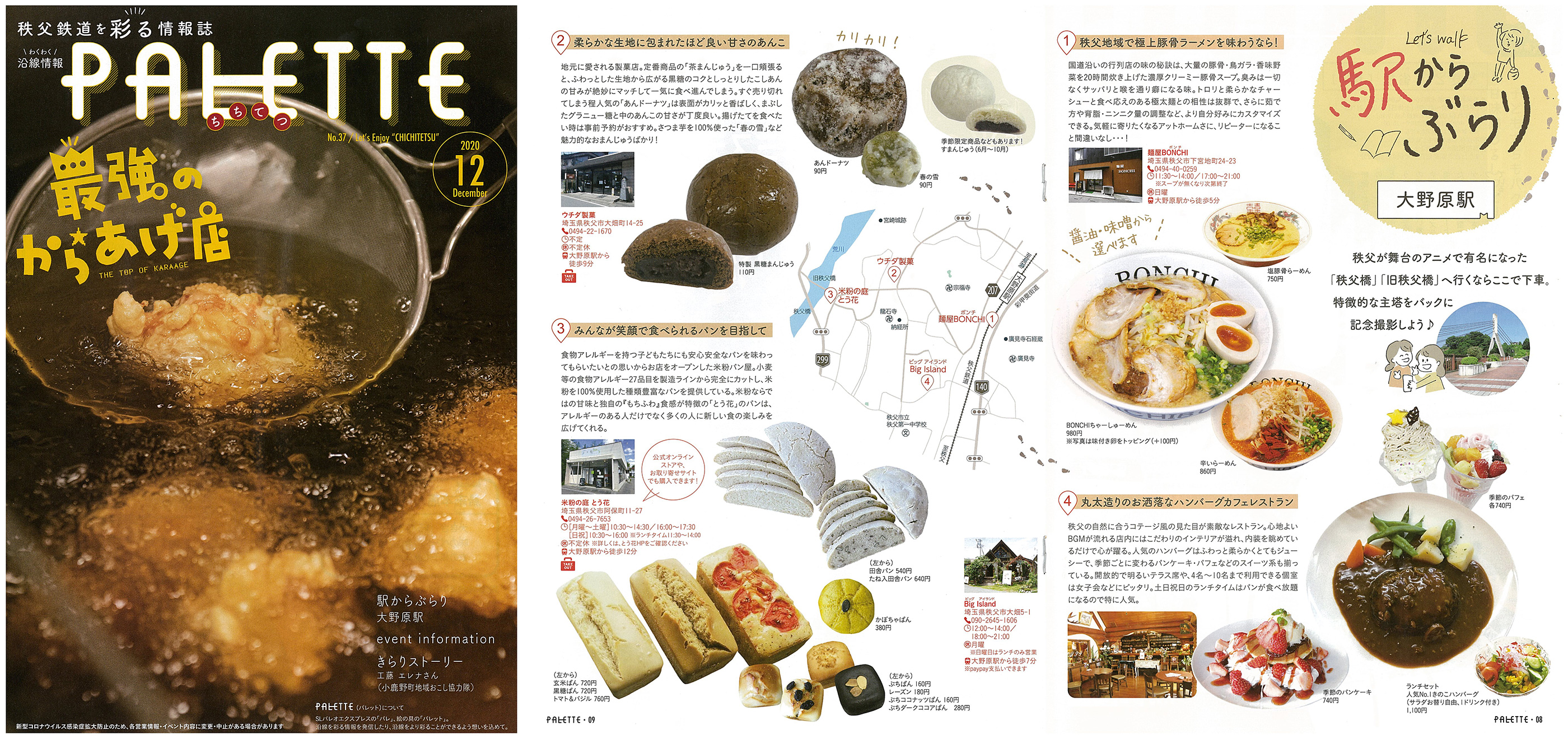 秩父鉄道様が発行しているPALETTE(パレット)2020年12月号に麵屋BONCHIが掲載されました。