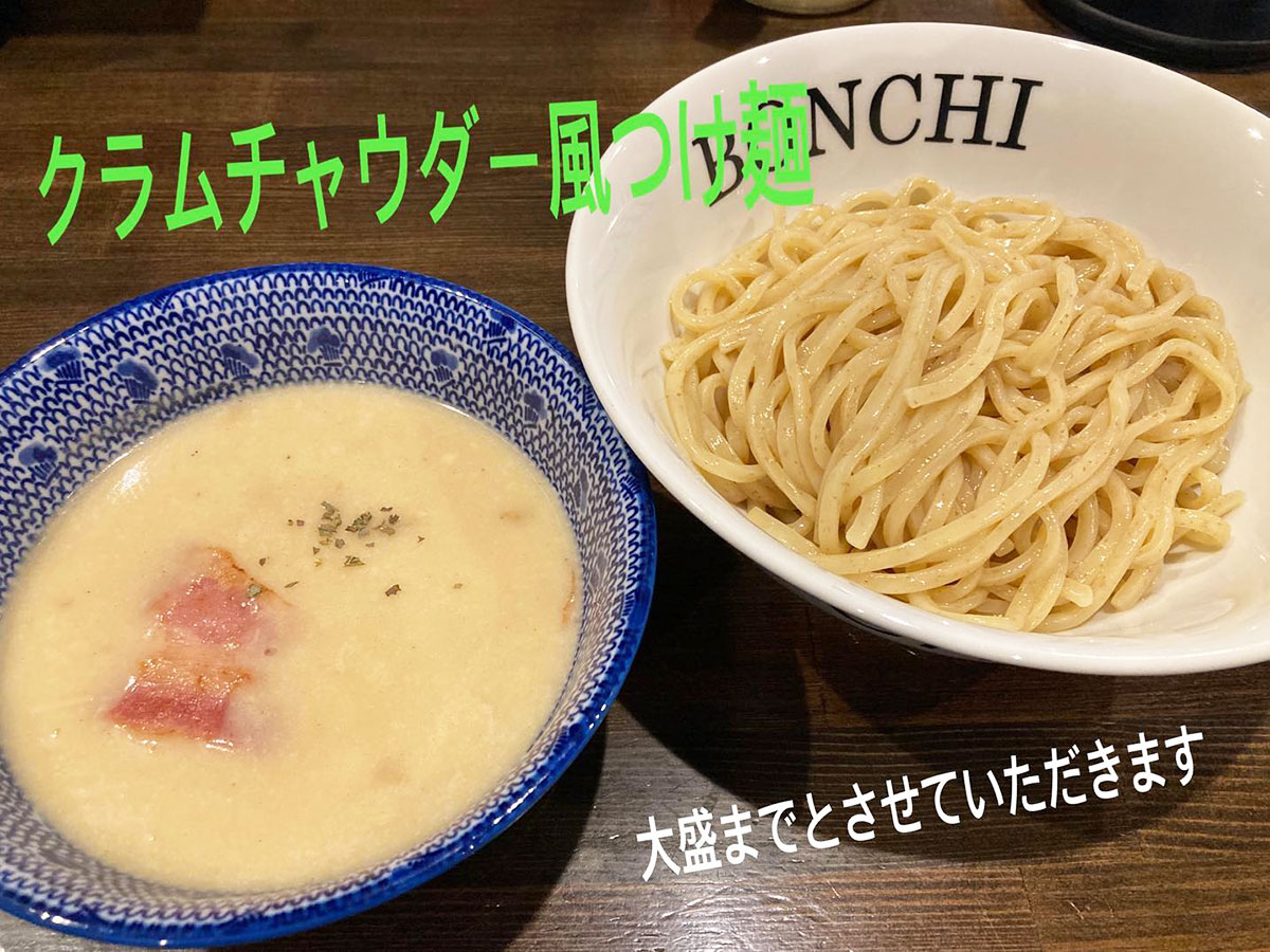 8月からクラムチャウダー風つけ麺始めます!つけ麺の種類が多いので曜日限定での提供になります!